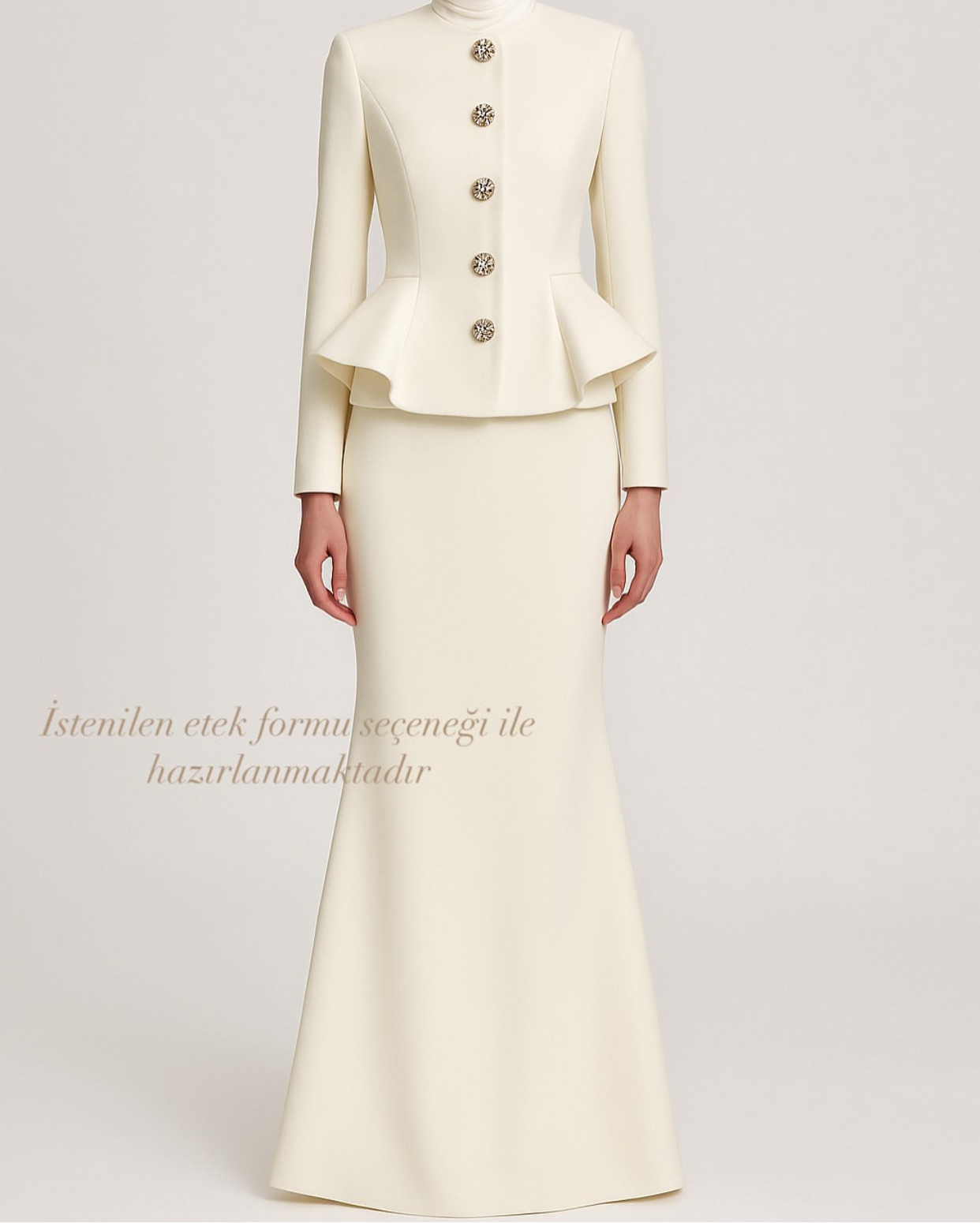 Yarım balık form etek, volanlı cep detayları